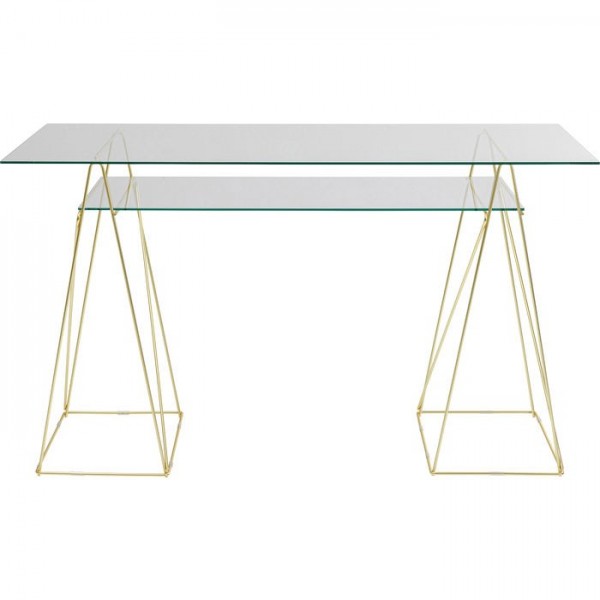 Escritorio de vidrio de filigrana con patas de mesa de acero resistentes y un área de almacenamiento adicional debajo de la parte superior...