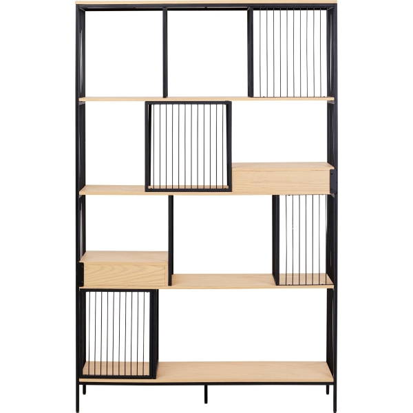 Nuestra gran estantería de chapa de madera lacada y acero con recubrimiento en polvo es el complemento perfecto para cualquier estilo de vida moderno. Su diseño sofisticado y atractivo la hace ideal para su uso en una variedad de habitaciones, desde el salón hasta la oficina en casa. Con un generoso espacio de almacenamiento y un diseño llamativo, esta estantería de diseño no sólo atrae las miradas, sino que también es extremadamente funcional. Ofrece la oportunidad ideal para presentar objetos personales, decorativos y libros con estilo y mantenerlos organizados.
