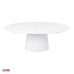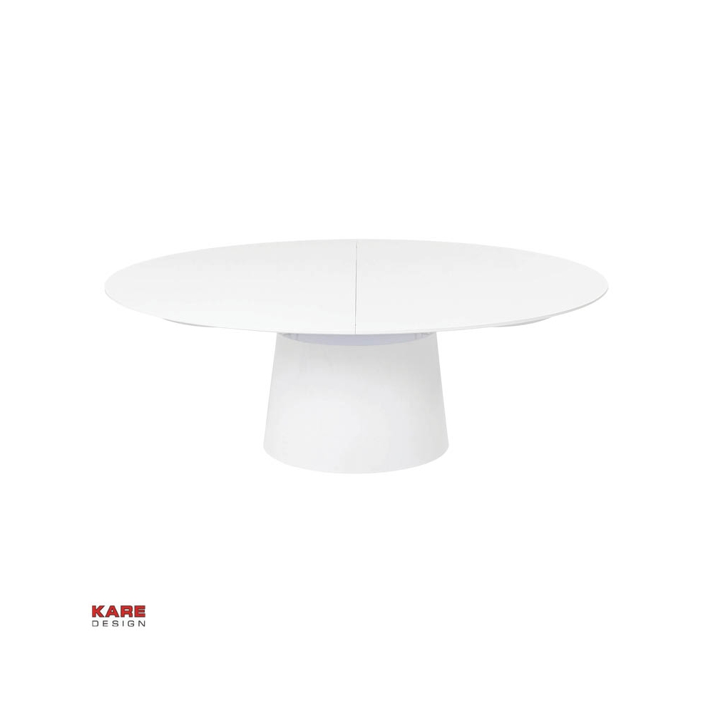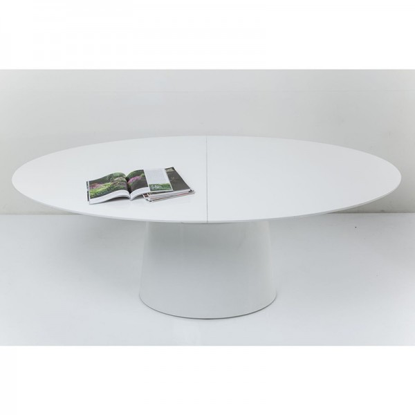 Elegancia con sistema. Esta mesa de comedor de forma elíptica combina funcionalidad con diseño. Extensible 200-250cm. Tablero de espesor 3cm. Material: MDF, blanco lacado brillante.