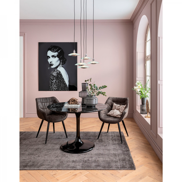 El sillón Thelma irradia puro confort. Las costuras decorativas que recorren el asiento y el respaldo y los atractivos pliegues de la funda hacen de esta silla tapizada un elegante mueble en el comedor. Lleva lo más llamativo a tu casa o a la oficina y decórala al mejor estilo, de seguro a todos les va a encantar, porque está fabricado con los más altos estándares de calidad, un aspecto moderno, un diseño y enfoque elegante, La fusión perfecta de glamour y sofisticación.