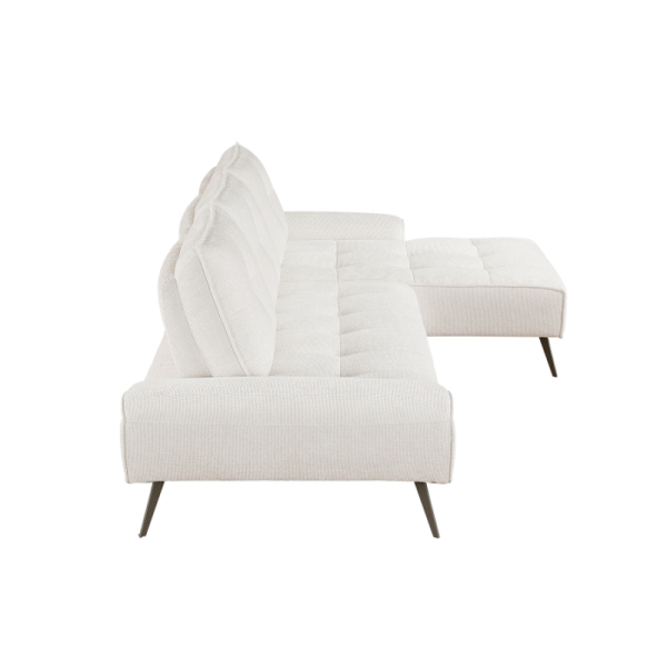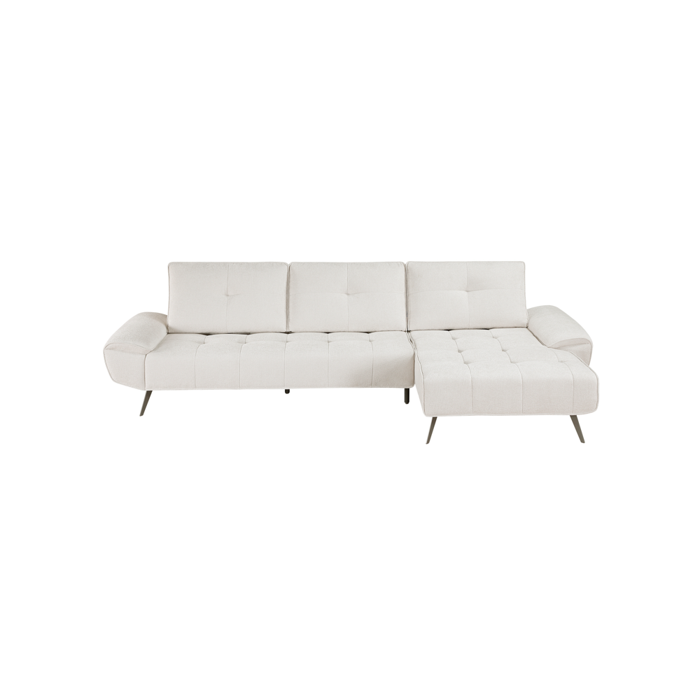 Eleva tu espacio de estar con el diseño contemporáneo y la comodidad personalizable de este moderno sofá cama seccional de 2 piezas. Tapizado en una tela beige elegante, este seccional añade un toque de sofisticación a cualquier habitación. Su chaise orientado hacia la derecha ofrece una opción cómoda para relajarse, mientras que los respaldos innovadores de doble posición permiten ajustar la profundidad del asiento, garantizando comodidad óptima para todos. Las patas metálicas con acabado en color metalizado oscuro aportan un toque de estilo industrial y brindan un soporte firme. Perfecto para apartamentos, condominios o casas modernas, esta seccional combina estilo, confort y funcionalidad en una pieza impresionante.